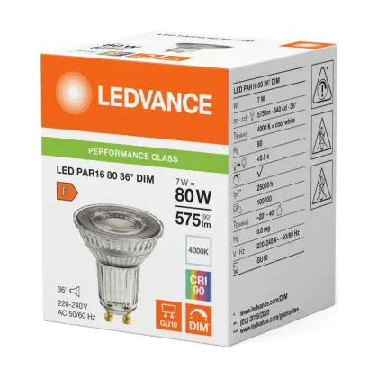Ledvance LED PAR16 GU10 Reflektor 7W 575lm 36D - 940 | Höchste Farbwiedergabe - Dimmbar - Ersatz Für 80W