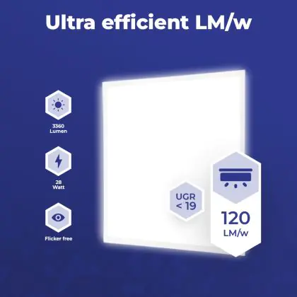 Les panneaux LED sont des solutions éco-énergétiques permettant de remplacer les panneaux classiques équipés de tubes fluorescents. Ce panneau Lot 10x Dalle LED Eco V4.0 28W 3360lm CCT | 600X600 UGR est conçu pour remplacer une dalle classique de 4x18. La consommation de ce panneau LED est considérablement plus faible qu’un panneau classique, à savoir, seulement 28 watts. Une économie d’énergie sans compromettre la qualité de la lumière. Le flux lumineux est de 3360 lumens. La lumière de ce panneau LED est diffusé à degrés et offre un bon rendu des couleurs. La durée de vie moyenne de ce panneau LED est de 70000 heures.