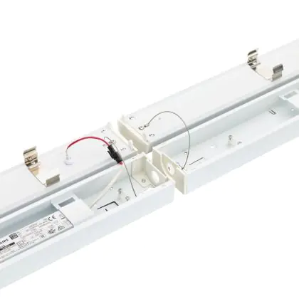 La réglette LED, Philips Réglette LED CoreLine Blanc 18W/29.5W 2500lm/4100lm - 830-840 CCT |120cm - Remplacement 2x36W est conçue pour remplacer les réglettes TL-D traditionnelles et permettant d’économiser jusqu’à 50% d’énergie. Très souvent utilisé pour l’éclairage d’entrepôts, d’usines, de parking et d’autres grands espaces extérieurs. Très simple d’installation, cette réglette de peut se fixer au plafond et au mur et projette 3000K - 4000K CCT, comme couleur de lumière. La Philips Réglette LED CoreLine Blanc 18W/29.5W 2500lm/4100lm - 830-840 CCT |120cm - Remplacement 2x36W dispose d’un indice de protection IP20 – Quasi-résistant à la poussière à l’eau et la poussière et d’une résistance aux chocs IK04.