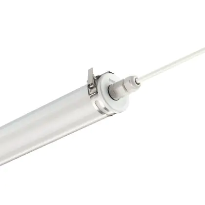 La réglette LED, Philips Réglette LED Étanche CoreLine Tubular WT210C 54W 7000lm - 840 | 150cm est conçue pour remplacer les réglettes TL-D traditionnelles et permettant d’économiser jusqu’à 50% d’énergie. Très souvent utilisé pour l’éclairage d’entrepôts, d’usines, de parking et d’autres grands espaces extérieurs. Très simple d’installation, cette réglette de 150cm peut se fixer au plafond et au mur et projette 4000K - Blanc Froid, comme couleur de lumière. La Philips Réglette LED Étanche CoreLine Tubular WT210C 54W 7000lm - 840 | 150cm dispose d’un indice de protection IP69K à l’eau et la poussière et d’une résistance aux chocs IK06.